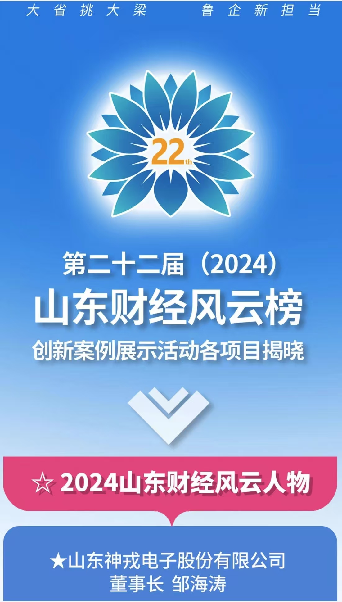 鄒海濤董事長榮獲“第二十二屆(2024)山東財經風云人物”[ 更多 ]